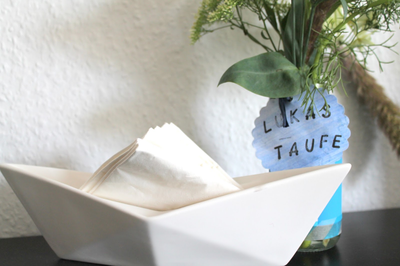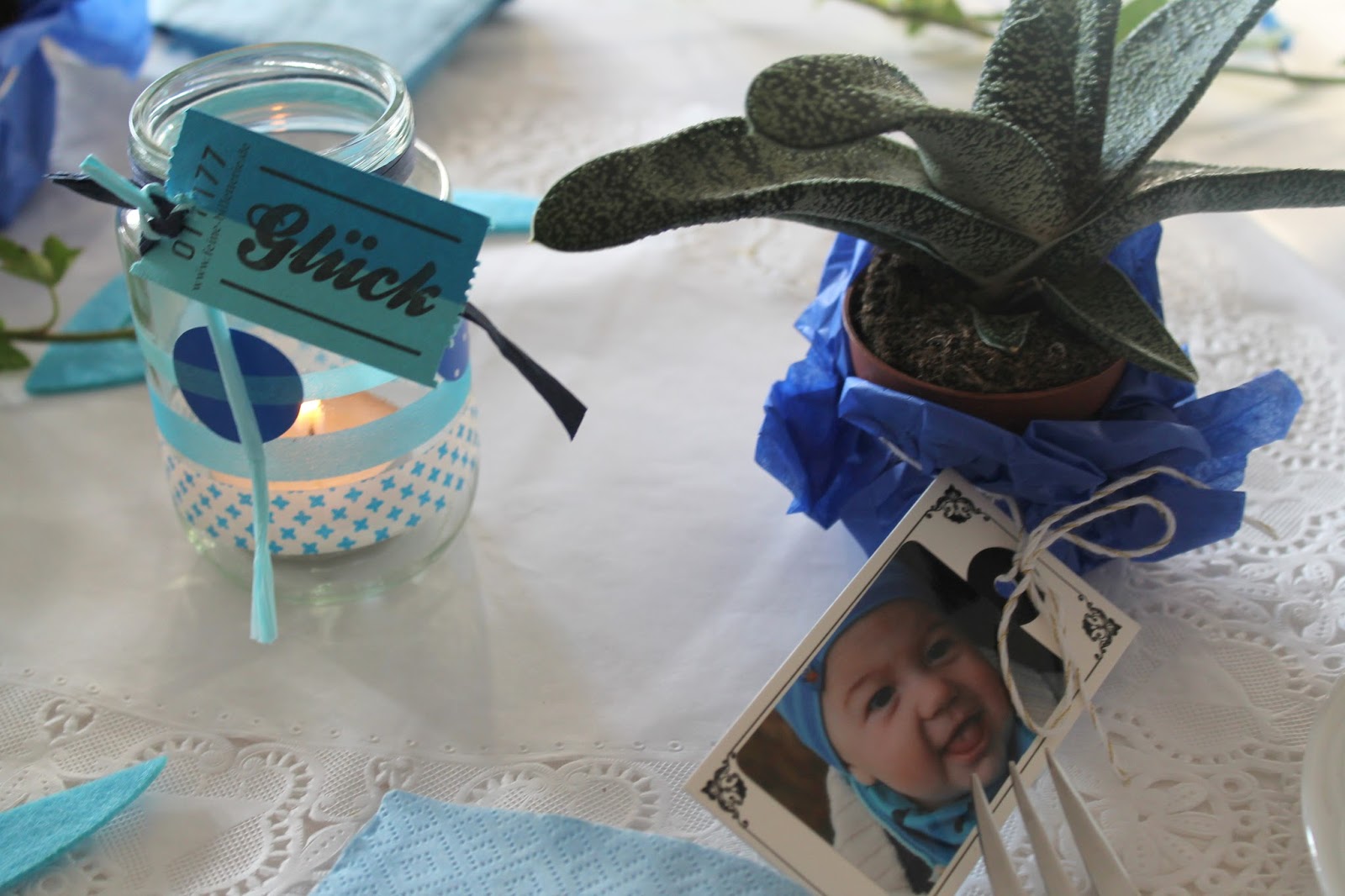 Ein wenig ruhiger war es hier in letzter Zeit. Nicht nur weil der Neue mobiler und weniger schlafbedürftig wird, er sollte auch noch getauft werden. Also musste in den paar freien Stündchen fleißig gebastelt, Einladungen geschrieben, organisiert, eingekauft und vorbereitet werden. Da blieb wenig Zeit für das kleine Freudenhaus. Dafür dürft Ihr nun ein wenig in das Result schauen.