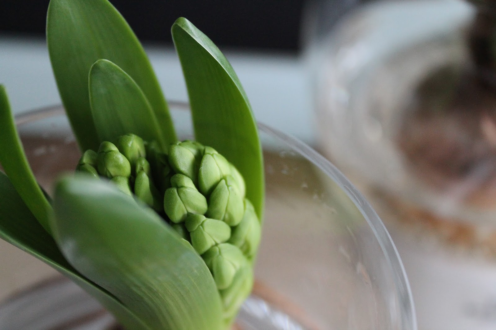 Nun schaue ich mal, was in den Gläsern aus den Hyazinthen Zwiebeln wächst…
