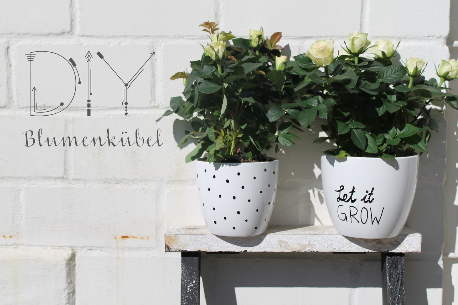 Zwei Töpfe habe ich mit einem Porzellanstift beschrieben. Das geht ganz einfach. Denkt euch einen flotten Spruch oder ein grafisches Muster aus. Übt zuerst auf einem Blog ein paar Schwünge mit dem Stift. Dann mit einer ruhigen Hand den Übertopf nach Lust und Laune bemalen. Ich habe meine Pötte z.B. mit “Let it grow” und meinen geliebten Polka-Dots verziert.